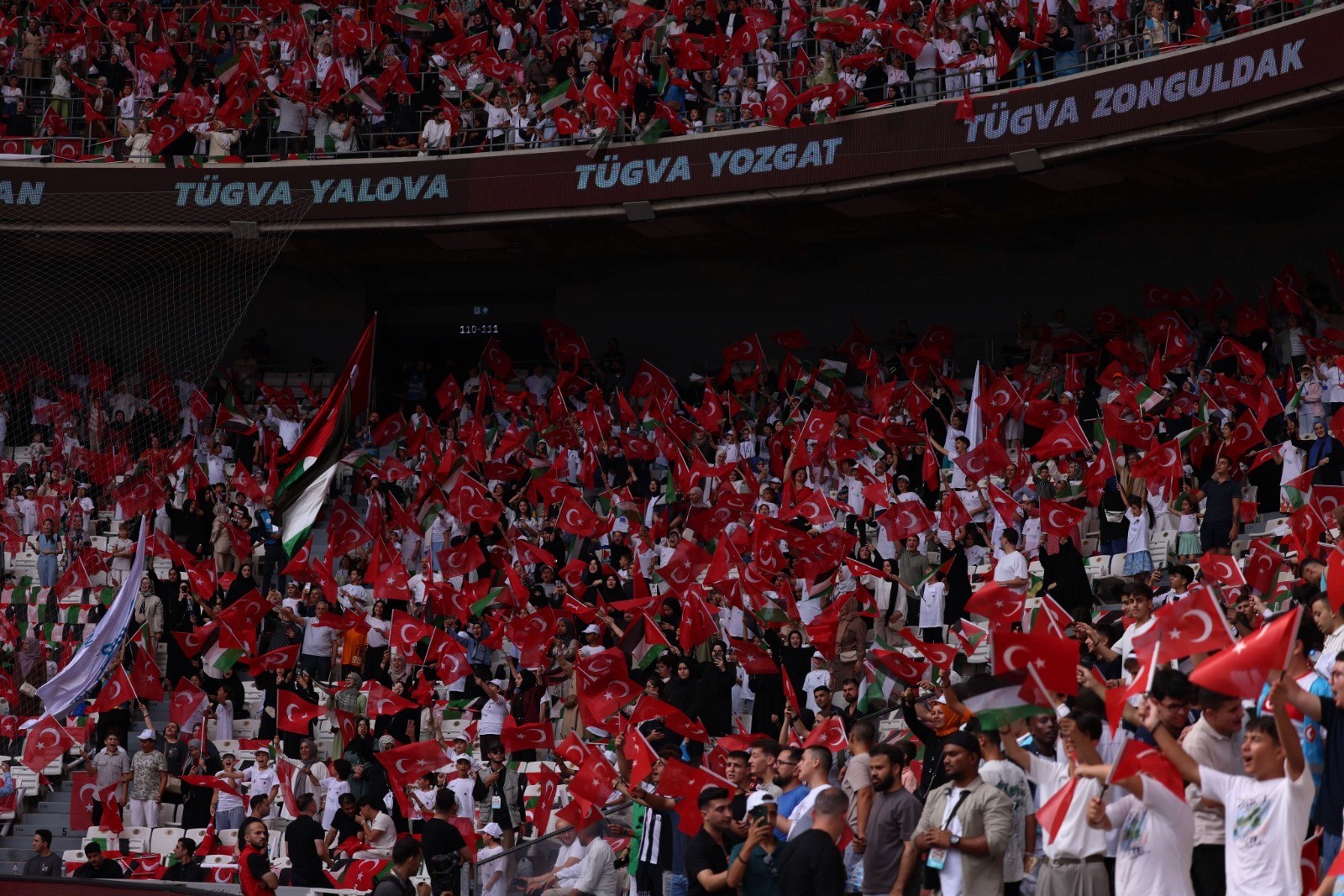 Programda Filistin de unutulmadı ve Drone gösterilerinde Türk bayrakları ile birlikte Filistin bayrakları da resmedildi.