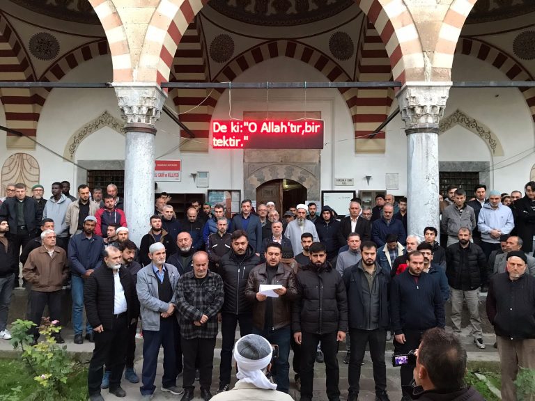 İstanbul’daki TÜGVA gençleri, Genel Başkan İbrahim Beşinci ve tüm teşkilatlarıyla birlikte Taksim Camii’nde buluştu. Sabah namazında yapılan dualar ardından İstiklal Caddesinde yürüyüş yaparak Galatasaray Lisesi önünde basın açıklaması yaptı. Vatandaşların da katılımıyla kalabalıklaşan protestoda, TÜGVA Genel Başkanı İbrahim Beşinci basın açıklaması yaptı.